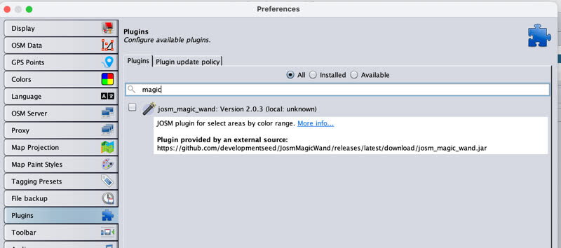 The Magic-Wand plugin for JOSM allows users to easily select areas for mapping and apply geometry simplification for more efficient editing.
